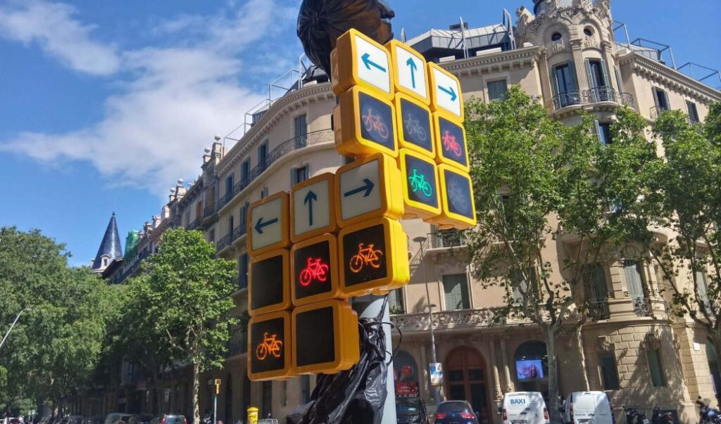 La polémica, sin embargo, no reside ahí: está en uno de los sistemas empleados para regular el tráfico de bicicletas. Se trata de un semáforo ubicado en el cruce de la ronda Sant Pere y la calle Méndez Núñez. Cuando llegan a este punto, los ciclistas tienen tres opciones: seguir recto, girar a la derecha o hacerlo a la izquierda.